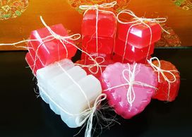 Jabones veganos creados con aceites esenciales y corazon de amatista, cuarzo rosa, cristal o jade que te apoyaran en diferentes situaciones emocionales o afecciones fisicas como dolores musculares.